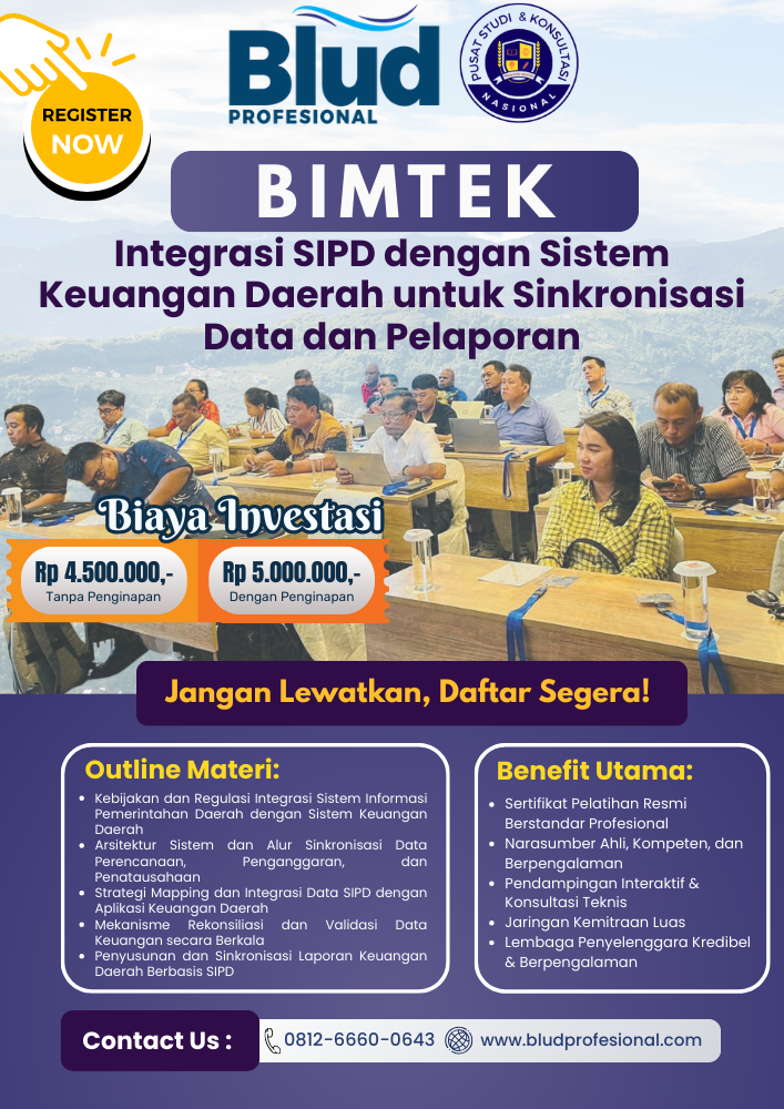 Optimalkan integrasi SIPD di daerah Anda melalui pelatihan teknis terstruktur dan tingkatkan kualitas pelaporan keuangan yang sinkron, akurat, dan sesuai regulasi terbaru.