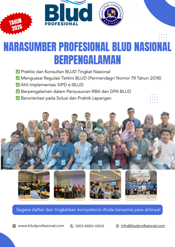 Tingkatkan kualitas pelatihan BLUD Anda dengan menghadirkan narasumber nasional berpengalaman yang siap mendampingi implementasi secara profesional dan aplikatif.